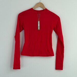 Skims Fits Everybody Long Sleeve T-Shirt in Cherry, Size Small