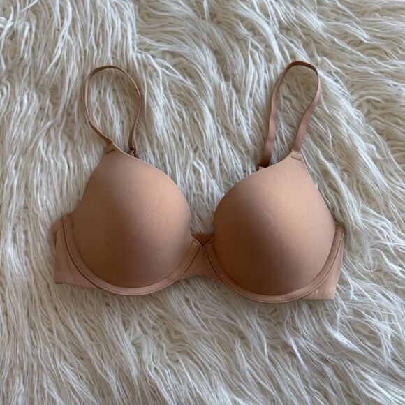The t-shirt bra that started it all. This classic foundation with demi coverage has 360-stretch technology for a custom-made fit even when youre between sizes. Made of our signature buttery-soft fabric with a second-skin feel that makes you forget youre wearing a bra. Offers unparalleled support with its lightly lined cups and flexible underwire that doesnt dig. Features adjustable straps and a hook and eye closure in the back. Fits true to your SKIMS bra size.