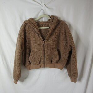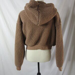 Skims Hoodie Teddy Bear Fleece Sherpa Cropped Full Zipper Brown Size Medium