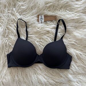 Skims Kim Kardashian Wireless Form Push Up Plunge Bra in Onyx Black Size 34D