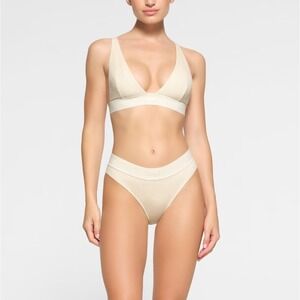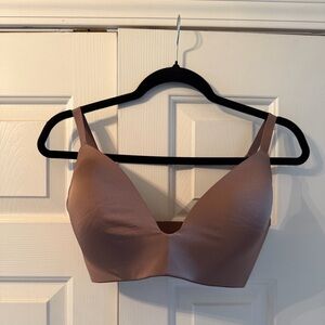 A flattering plunge style with ultra-soft push-up foam pads that offer the perfect amount of lift and support. This wireless style has lightly lined, cloud-like foam pads for ultimate comfort and wide microfiber wings for a smooth and seamless look. Features fully adjustable straps, a tonal 3D SKIMS logo on the front, and a hook and eye back closure. Fits true to your SKIMS bra size.
