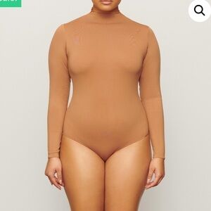 Skims L/XL ESSENTIAL MOCK NECK LONG SLEEVE BODYSUIT Camel NIB