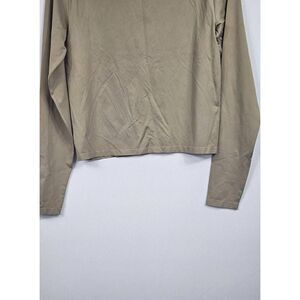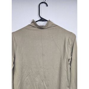 Desert color, size 2x.  Very soft and comfortable pullover,  mock neck with long sleeves.   Nice weight fabric.   Fabric is 90% nylon,  10% elastane.