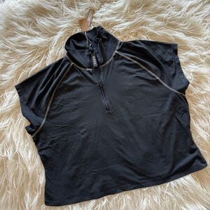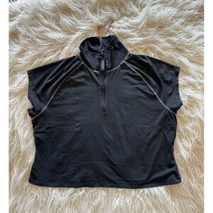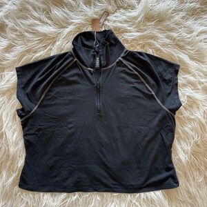 Get a perfect fit every time in this flattering cropped tee with a ribbed collar and contrasting vintage-inspired stitching details for a sporty look. Features a half zipper and raglan seams in contrast stitching. Fits true to size.