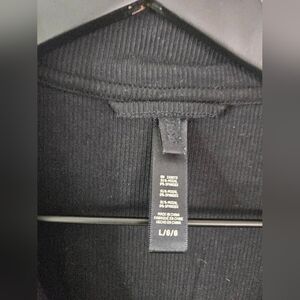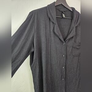 Skims Ribbed Long Sleeve Sleep Top Collared Button Down in Black Size Large