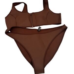Skims Brown Cocoa Rubberized Scuba Swim Tanga Bikini Scoop Neck Top New with tags Size 4X