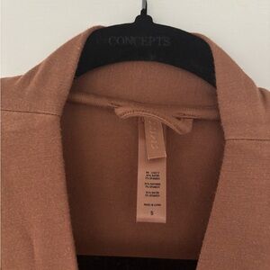 Experience comfort and style with this elegant tan robe. Perfect for lounging or sleepwear.