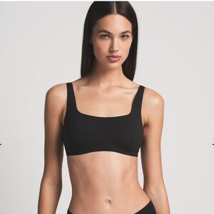 Experience comfort with this seamless black bralette, perfect for everyday wear.