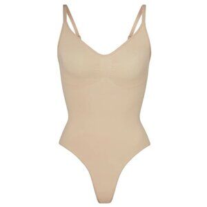 Skims Sculpting Thong Bodysuit Mica Cream S/M (US 4–10) NWOT $70