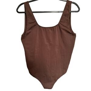 Skims Seamless Thong Bodysuit Soft Smoothing Scoop Neck Open Back Brown Size 4X