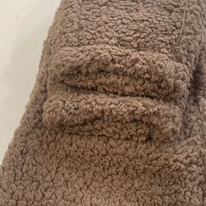 Soft and warm brown sherpa blanket. Perfect for cozy nights.