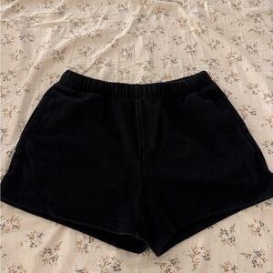 These versatile black shorts are perfect for any casual outing. Enjoy comfort and style with a sleek design. Size small. Worn once.