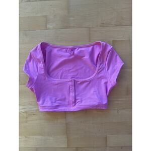 Skims Signature Swim Super Cropped T Shirt Henley Vibrant Pink L