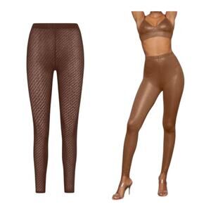 Skims Signature pants logo foil print mesh stretch full length leggings Small S
