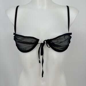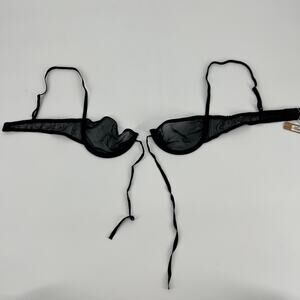 Skims Silk Balconette Romance Bralette Bra 34C NEW Onyx Black Sheer Tie Front