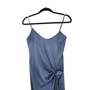 Skims Silk Sleep Slip Maxi Dress Small Artic Blue High Slit Ruched Sexy Evening