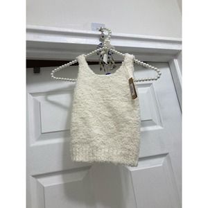 Skims Size 4T / 5T Kids Cozy Scoop Neck Tank in Bone Kid Girl Fuzzy Top NWT