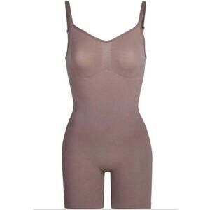 Skims Size xxs/xs Sculpting Mid Thigh Bodysuit Umber Shapewear NWOT xxs / xs New without tags Color hard to capture , reference to color chart for best representation of color “umber” Wear this mid thigh bodysuit for strong compression and targeted control along the waist, tummy, and legs, plus butt-enhancing pockets for a lifted look. Features front pique stitching along the front and sides for a defined and supported bust, adjustable straps, a wide crotch for added coverage, and an open cotton gusset.