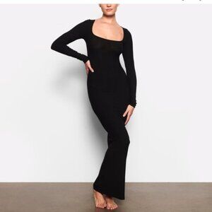 Skims Soft Lounge Long Sleeve Dress Ribbed Onyx Size XXS