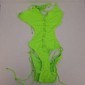 Skims Swimsuit Plus 4X Recycled Swim Lace Up Monokini Halter Neon Green NWT