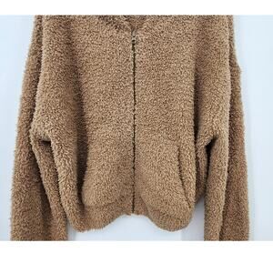 Skims Teddy Brown Crop Full Zip Hoodie Comfy Soft Sweater Size L/XL