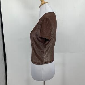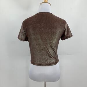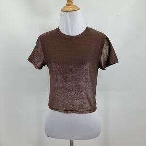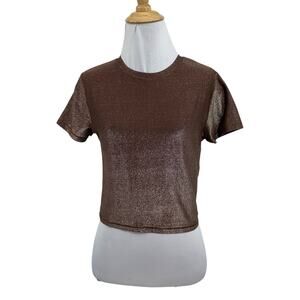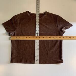 Skims Top Womens L Large Chocolate Metallic Shimmer Cropped Stretch Baby Tee