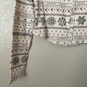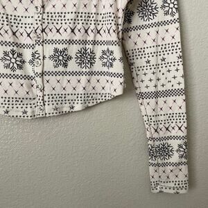 Skims Top Womens Large White Black Fair Isle Cropped Long Sleeve Knit Pajama