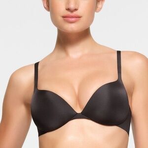 Details: Condition: New with Tags Color: Onyx The Ultimate Bra redefines traditional push-up bras by enhancing your natural bust shape and completely transforming the look, shape, and fullness of your bust. This bra is made of a super soft sheen microfiber fabric with extra compressive side wings for smoothing. With a comfortable, concealed underwire and premium teardrop shaped foam pads, this bra sits seamlessly under clothing. Designed for a snug fit. If you are between sizes, it is recommended in sizing up one band size. Please note that Skims bra sizing might be different than standard sizing. It is recommended to check the Skims website for a helpful fit guide to find your right size.