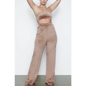 Skims Velour Wide Leg Tan Pants Size 4XL Loungewear Cozy Comfort Y2K Trendy NEW