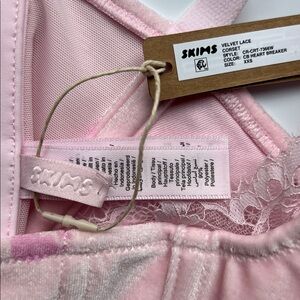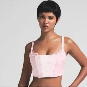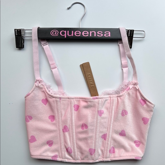 Skims Velvet Lace Cropped Corset in the "Heart Breaker" pattern in XXS