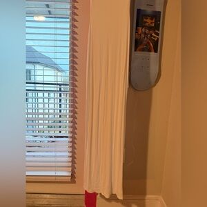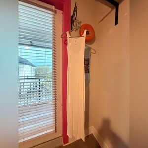 Chic and flowing white maxi dress. Perfect for any occasion. Low cut in the front so great for using your imagination to layer and style!