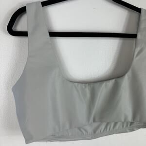 Skims Women's Size 2X Gray Faux Leather Scoop Neck Bralette Bra Kim K. Never worn but there is a spot pointed out in photo from the tags.