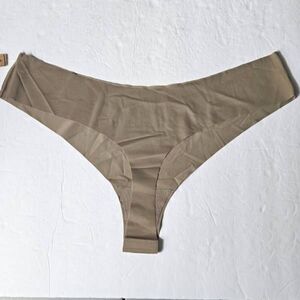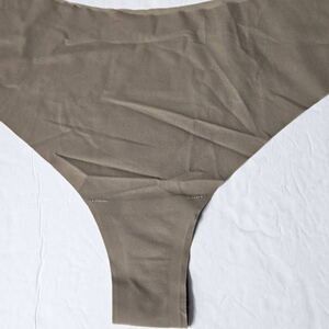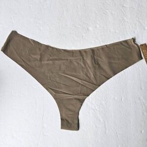 Soft and comfortable. Polyamide, elastane fabric with cotton lined gusset. Sits below waist, thong back. Desert color.