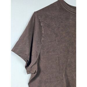 Cocoa color, size 4x. Pretty cropped, crewneck, short sleeved pullover tee. Very soft and comfortable. Fabric is 92% cotton, 8% spandex. Holds it's shape.