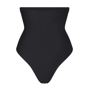 Get the perfect amount of curve-enhancing compression in this soft matte high-waisted thong solution. Features interior bonded elastic along the waist for support and a cotton gusset lining. Fits true to size. Size down for more compression.