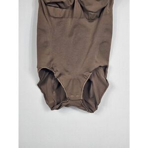 Umber color, size 4x. Fully adjustable straps, 2 snap cotton lined gusset. Firm control with comfort. Fabric is 79% nylon, 21% spandex.