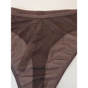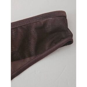 Cocoa color, size 3x. Pretty shiney and soft. Fabric is 85% polymide, 15% elastane. Cotton lined gusset, thong back.