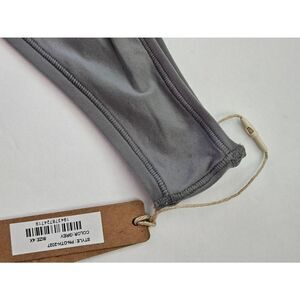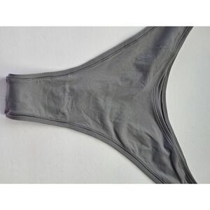 Gray, size 4x. Sexy and figure flattering, V cut thong. Soft and comfortable, cotton lined gusset. Fabric is 76% polymide, 24% elastane.