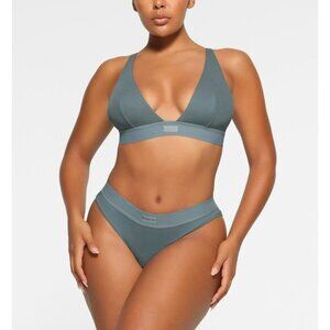 Brand new with tags Skims lace triangle bralette in a rich chocolate brown shade. Size Large. Features delicate floral lace trim, soft stretchy fabric, adjustable straps, and a comfortable elastic underband for light support. No padding, perfect for everyday wear or layering.