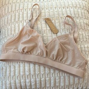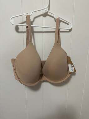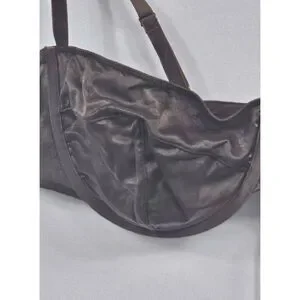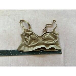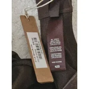 Cocoa color, side 42d. Pretty and comfortable! Mesh lined, underwire cups, velvet adjustable straps, hook and eye back closure. Fabric is satin with a bit of sparkle.