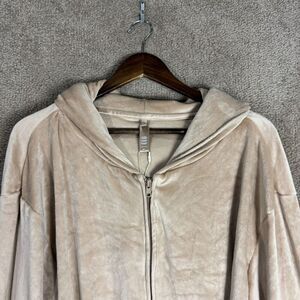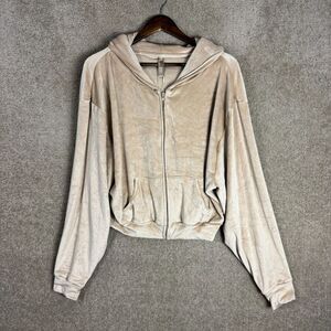 Skims Hoodie Womens Plus 4XL Tan Velour Velvet Stretch Full Zip Semi Cropped NEW