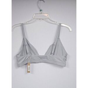 Moonstone color, size xl. Triangle cups, fully adjustable straps. Very soft and comfortable. Fabric is 76% polymide, 24% elastane.
