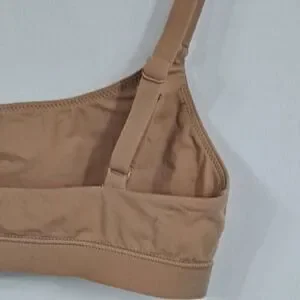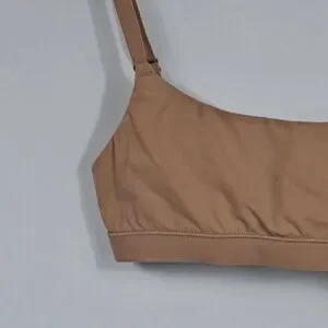 Ochre color, size Xs. Fully adjustable straps, pull on style. Fully lined, no padding. Fabric is 76/polyamide, 24/elastane.