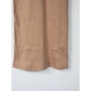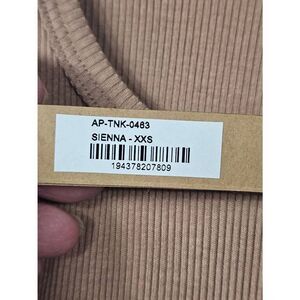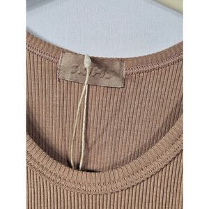 Sienna color, size xxs. Pretty scoop neck front, ribbed fabric pullover is soft and comfortable. Fabric is 58/ cotton, 44/ modal, 7/ elastane.