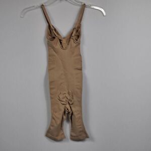 Clay is the color, size Small/Medium. Fully adjustable straps, split gusset, mid thigh length. Known for comfort and support, firm control. Fabric is 79 nylon, 21 spandex.