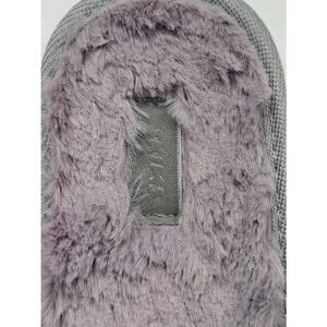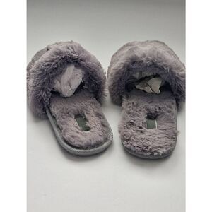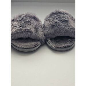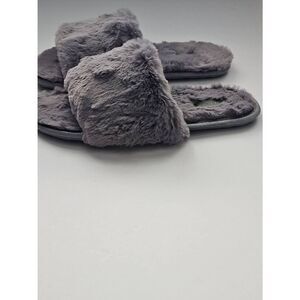 Light gray, size 5.5. Fluffy and very soft slides are extremely comfortable. Hard, Solid bottom.