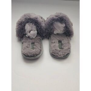 Gray, size 5 1/2. Soft fluffy and very comfortable! Furry upper, synthetic hard sole.