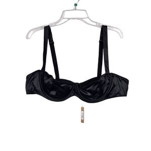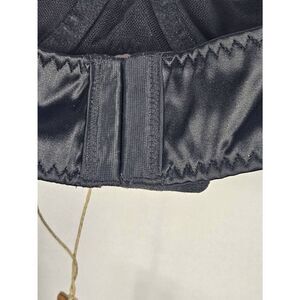 Onyx color, size 44C. Satiny fabric is 92% polyester, 8% spandex. Underwire cups, adjustable straps, triple hook and eye back closure. Beautiful bra!