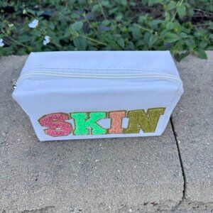 Store your skincare products in style with our super cute Skin Patches Make Up Bag. Featuring adorable patches and a spacious design, this bag is perfect for traveling or everyday use. Say goodbye to boring makeup bags and hello to cuteness and convenience!
