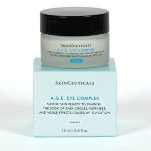 SkinCeuticals A.G.E. Eye Complex is an advanced anti-aging eye cream formulated to target dark circles, puffiness, and wrinkles around the delicate eye area. Enriched with blueberry extract, Proxylane™, and optical diffusers, it helps improve firmness, elasticity, and radiance while reducing visible signs of fatigue. The rich, nourishing texture provides long-lasting hydration for a smoother, more youthful look. Brand new, sealed, and in box — 0.5 oz / 15 ml size.